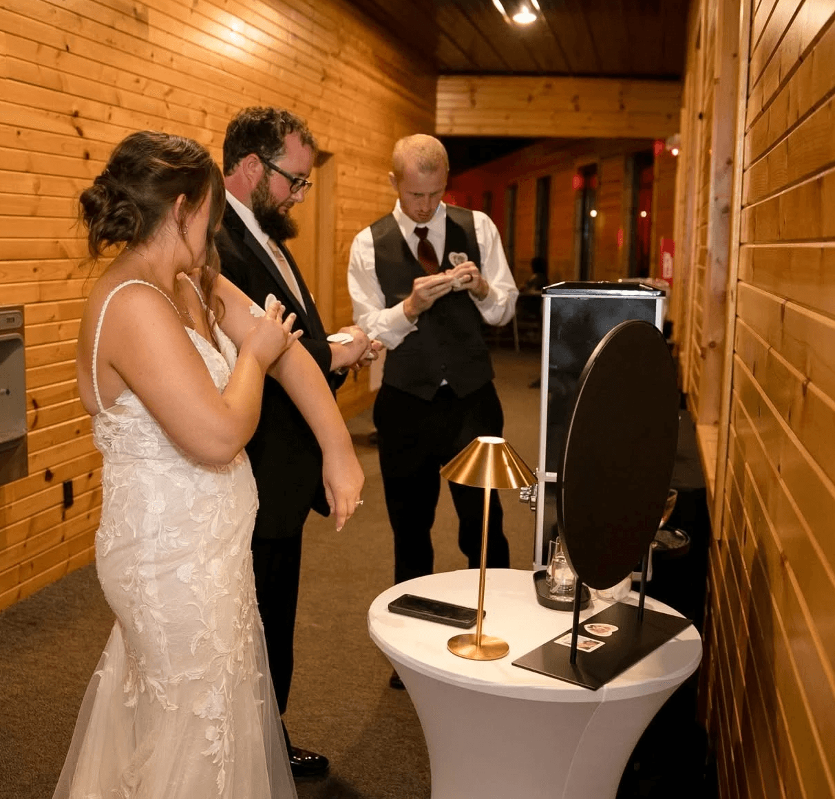 Looking for a wedding detail that’s both personal and fun? Imagine guests leaving voice messages in an audio guestbook you’ll treasure forever, or walking away with custom photo magnets made on-site during the reception. From romantic signage to elegant invitations, we help you carry your wedding style through every touchpoint. It’s these small, interactive moments that guests remember—and that you’ll want to revisit again and again.